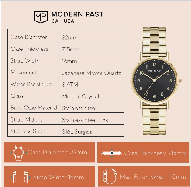 At Modern Past, we want to ensure that you find the perfect watch that fits your style and comfort. To help you make the right choice, here's a simple guide to selecting the ideal watch size:
