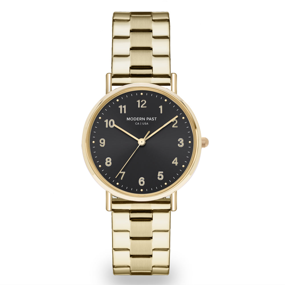 Point Taken. Right on target with a perfect balance between fashion and function, the Emma is an easy addition to your daily dress code. The dial features feminine numerical indices and a brushed finish that easily goes between fun and formal. This Emma Gold Stainless Link / Black looks classic yet modern with its classic black dial with contrasting gold numerical indices, and a polished stainless steel link band.