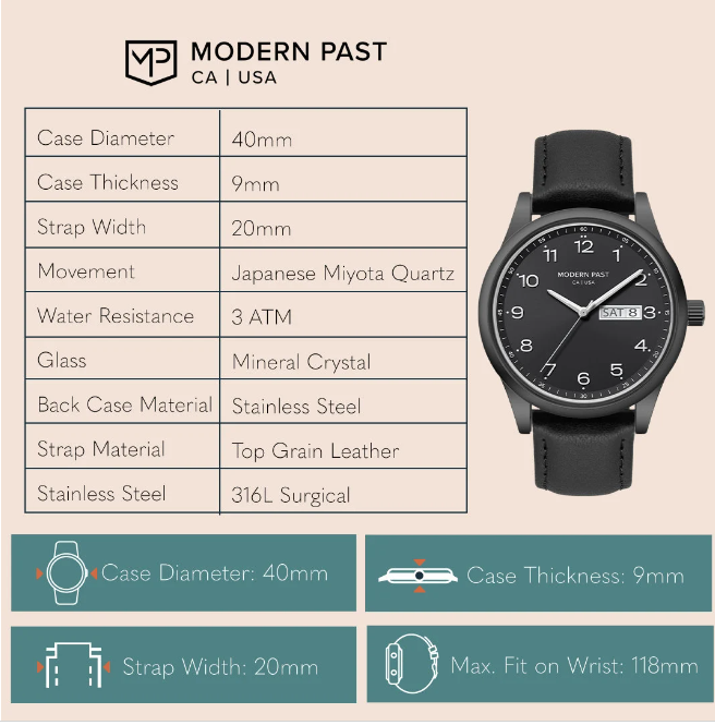 At Modern Past, we want to ensure that you find the perfect watch that fits your style and comfort. To help you make the right choice, here's a simple guide to selecting the ideal watch size: