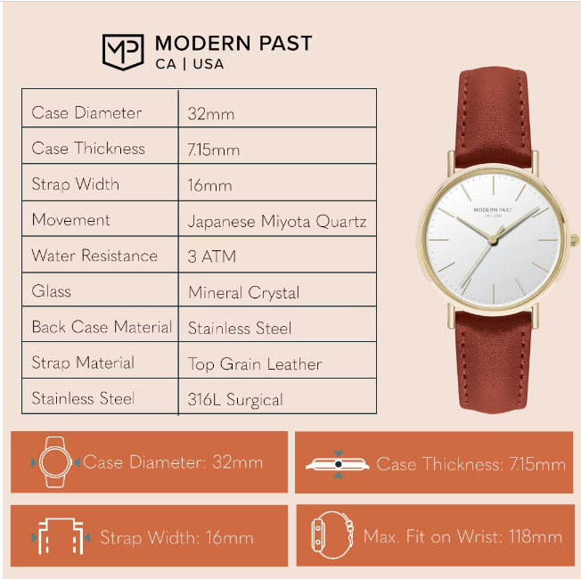 At Modern Past, we want to ensure that you find the perfect watch that fits your style and comfort. To help you make the right choice, here's a simple guide to selecting the ideal watch size: