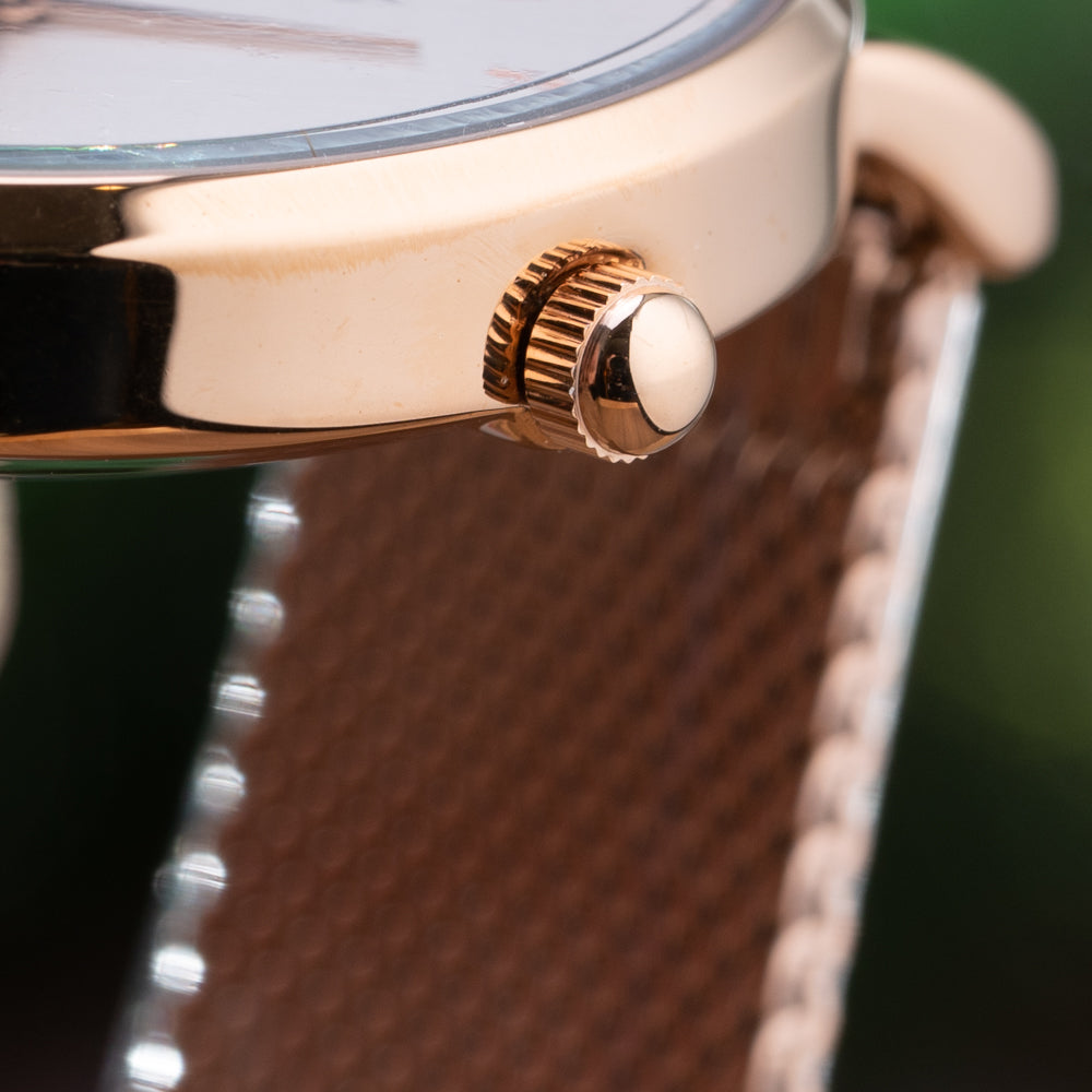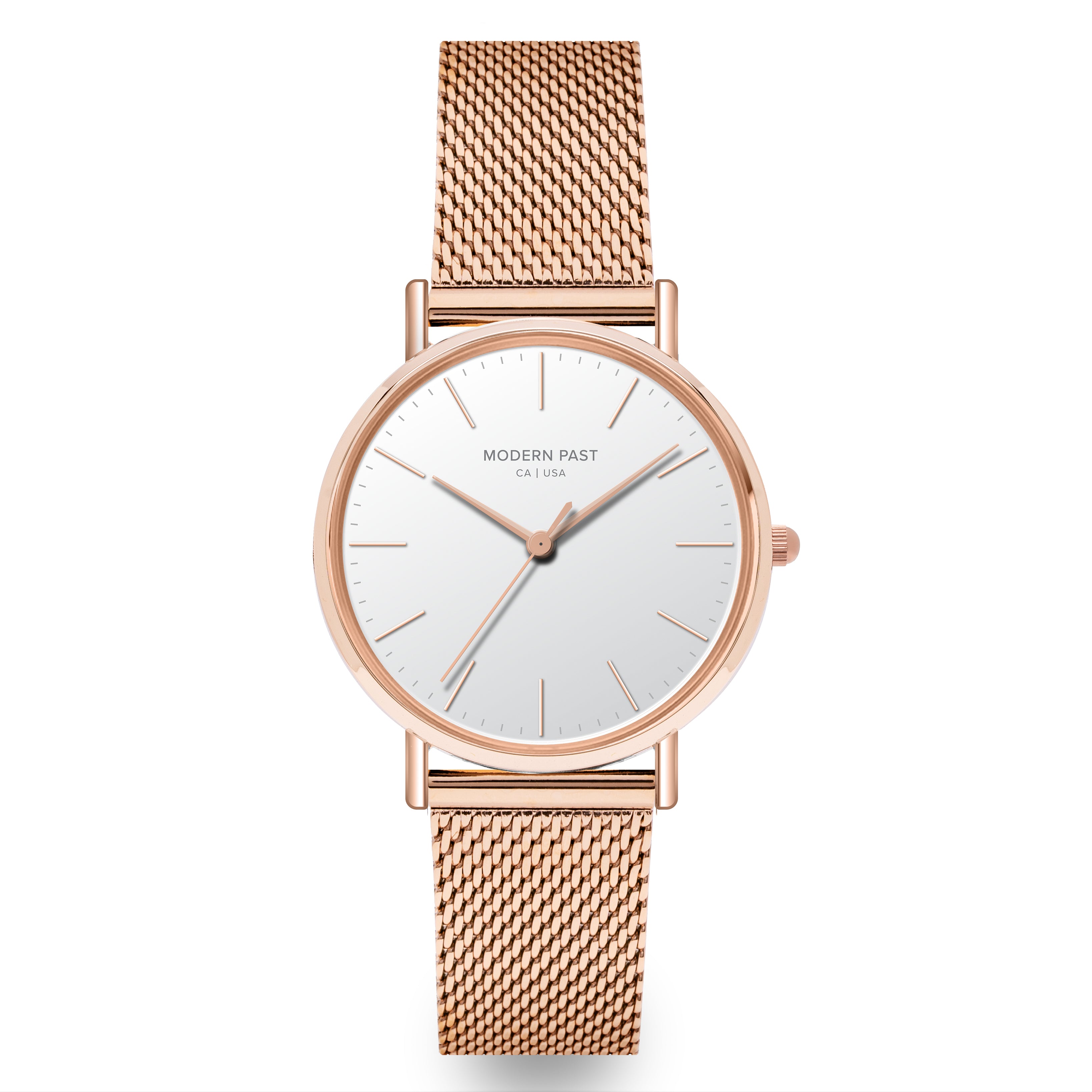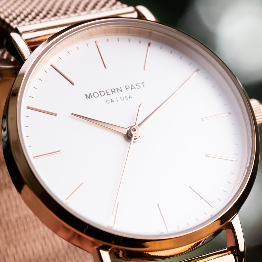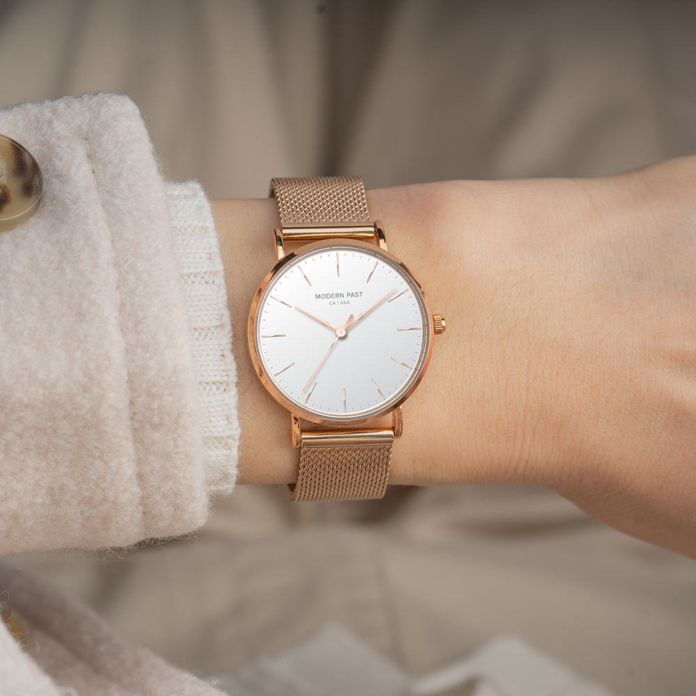 Vintage-inspired modern aesthetic, sophisticated yet simple, the Lola is for the woman that radiates confidence through her personal style and essence. This elegant Lola Mesh Rose Gold / White is featured with its white sandblasted dial with simple markings, and completed with a rose gold stainless steel mesh band that drapes gracefully on the wrist - a design looks good with anything you wear to work or on the weekend.