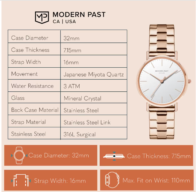 At Modern Past, we want to ensure that you find the perfect watch that fits your style and comfort. To help you make the right choice, here's a simple guide to selecting the ideal watch size:
