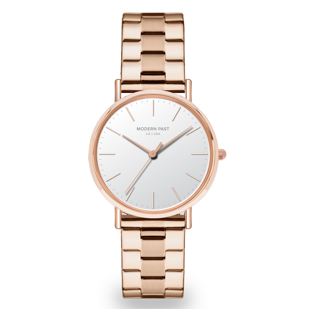 Vintage-inspired modern aesthetic, sophisticated yet simple, the Lola is for the woman that radiates confidence through her personal style and essence. This elegant Lola Rose Gold Stainless Link / White is featured with its white sandblasted dial with simple markings, and completed with a polished stainless steel link band - a design looks good with anything you’d wear to work or on the weekend.