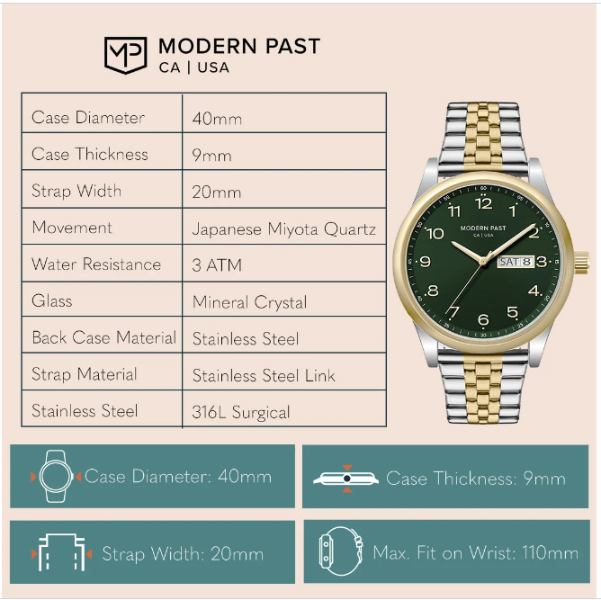 At Modern Past, we want to ensure that you find the perfect watch that fits your style and comfort. To help you make the right choice, here's a simple guide to selecting the ideal watch size: