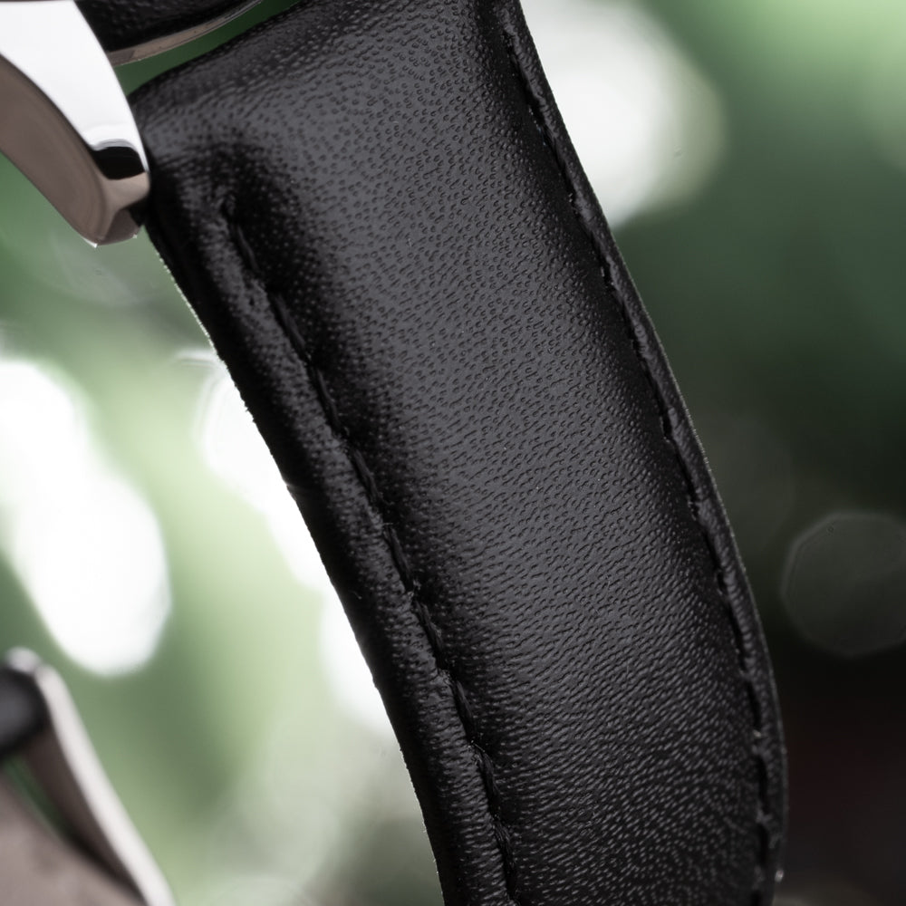 Strap Material: Top-Grain Black Leather