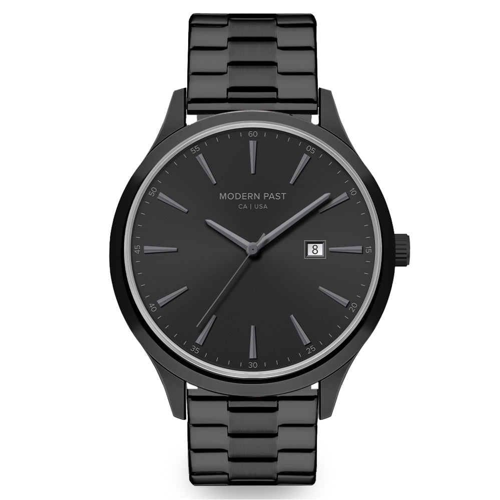 The Parker is powered by a reliable Japanese quartz movement with date function and equipped with a polished stainless steel watch strap. Parker Black Stainless Link / Black’s classic design, simple and commanding with its black dial detailed with gunmetal hourly markings, makes it a timeless wearable time-teller and a great addition to any occasion.