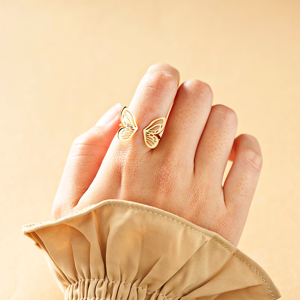 This ring captures the transformative beauty of butterfly wings, adding an artistic touch to your style. It's a symbol of change and fascination, leaving a trail of charm on your journey.