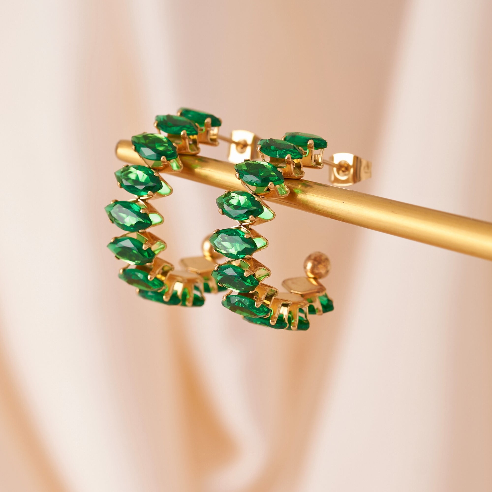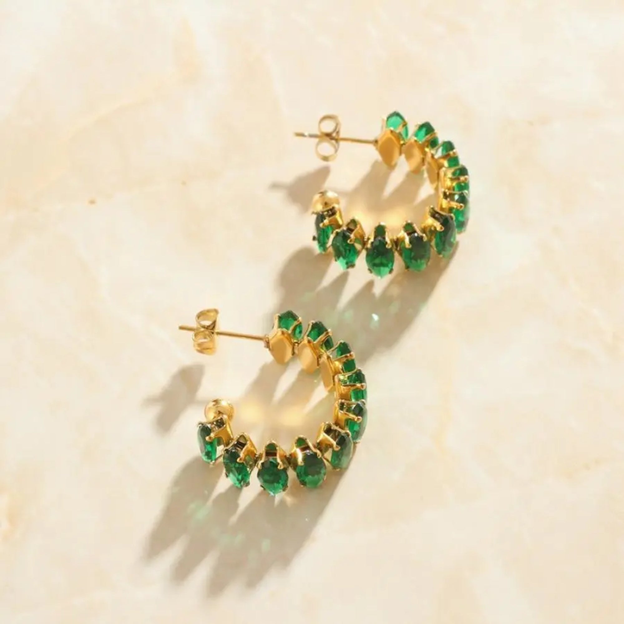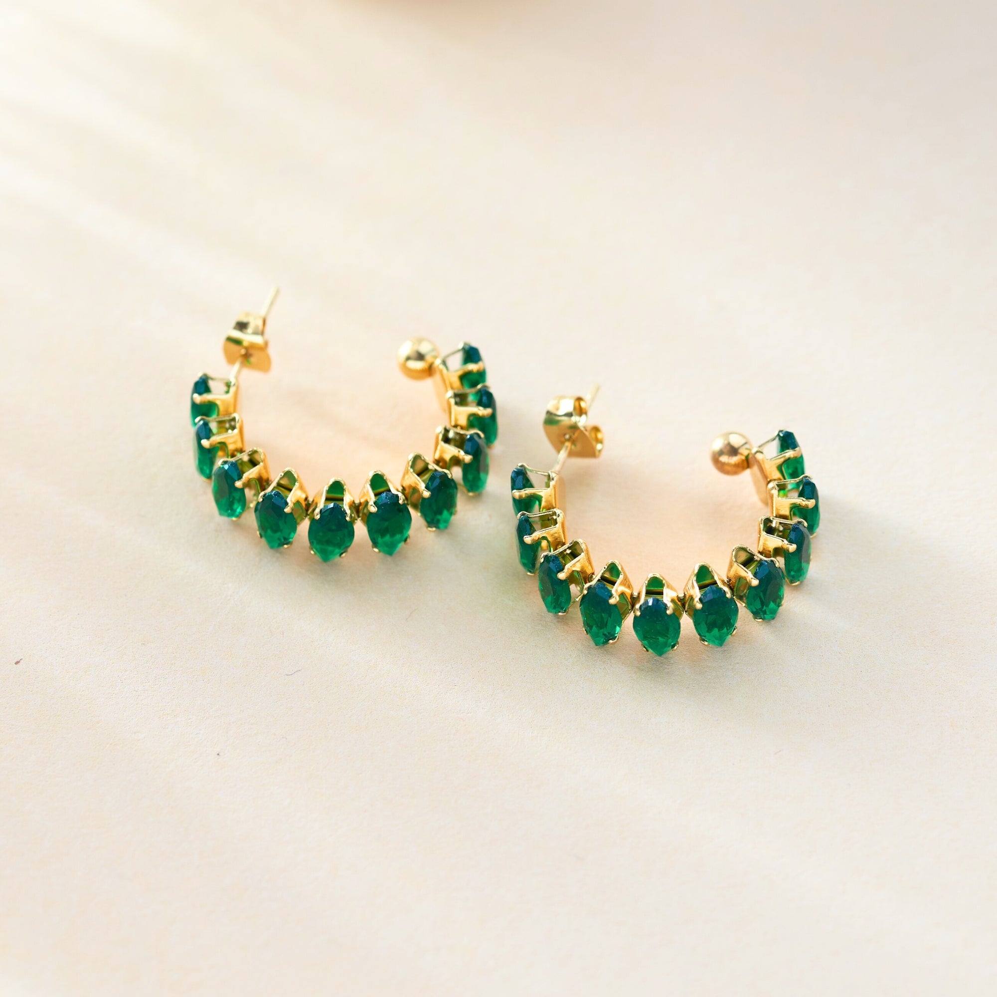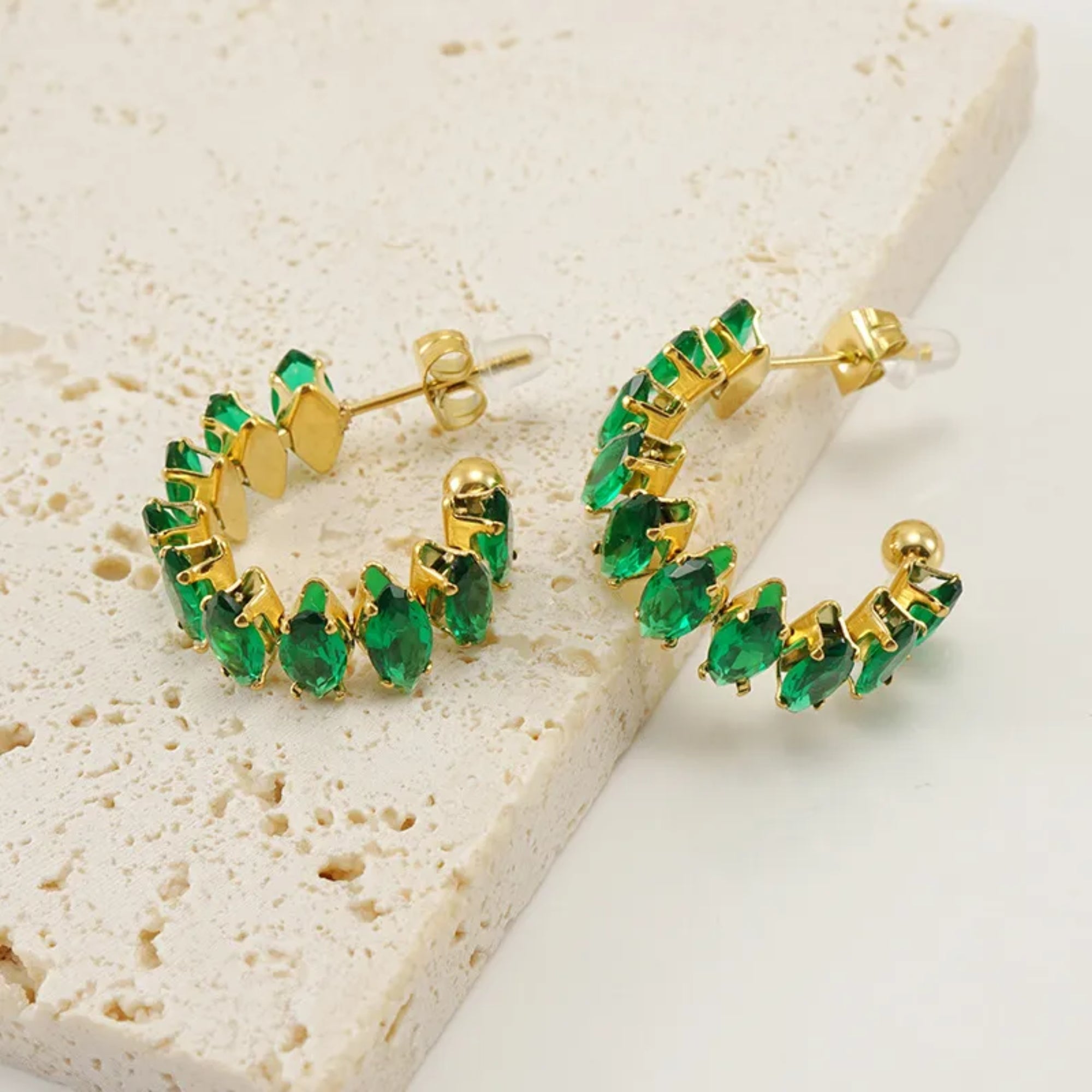 Green Emerald C Shape Earrings