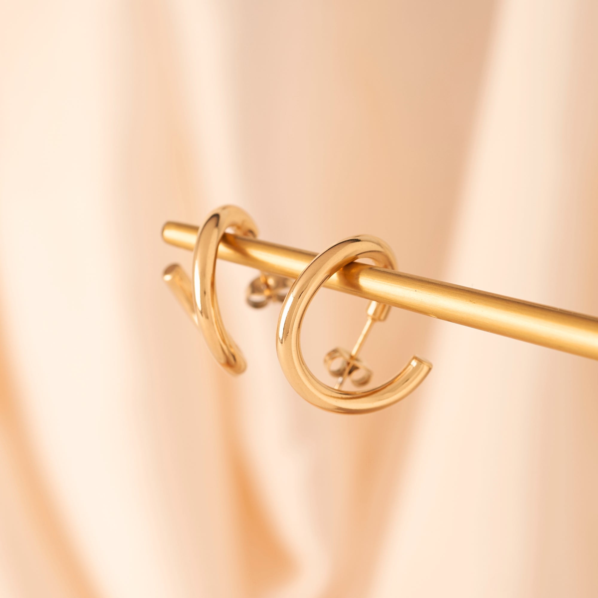 Redefine beauty with these uniquely twisted hoop earrings. Ideal for bringing a playful edge to casual or office attire, they embody fun and modern style.