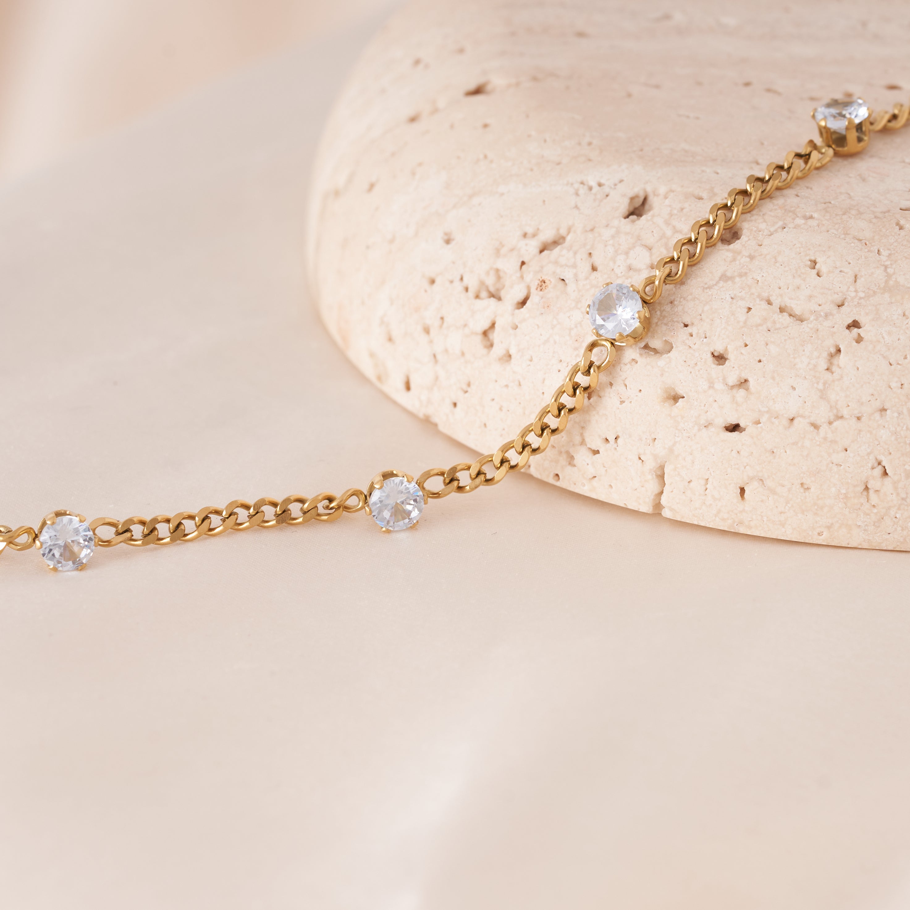 Dazzle in this delicate chain bracelet adorned with sparkling crystals. Its radiant beauty makes it a show stopping accessory for any event.