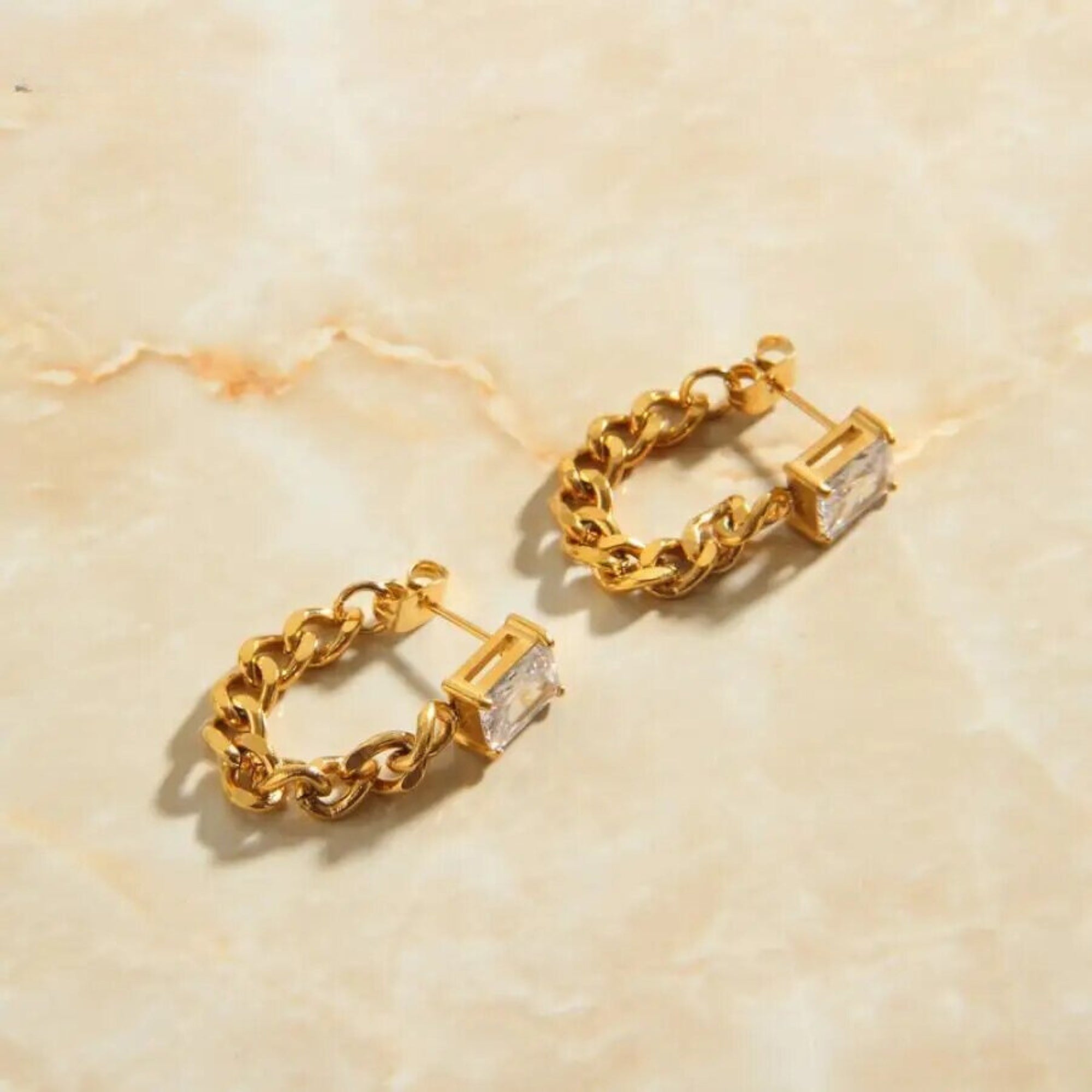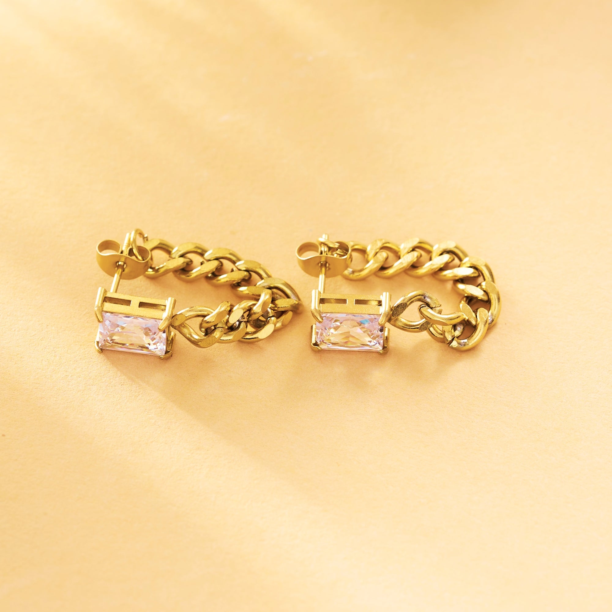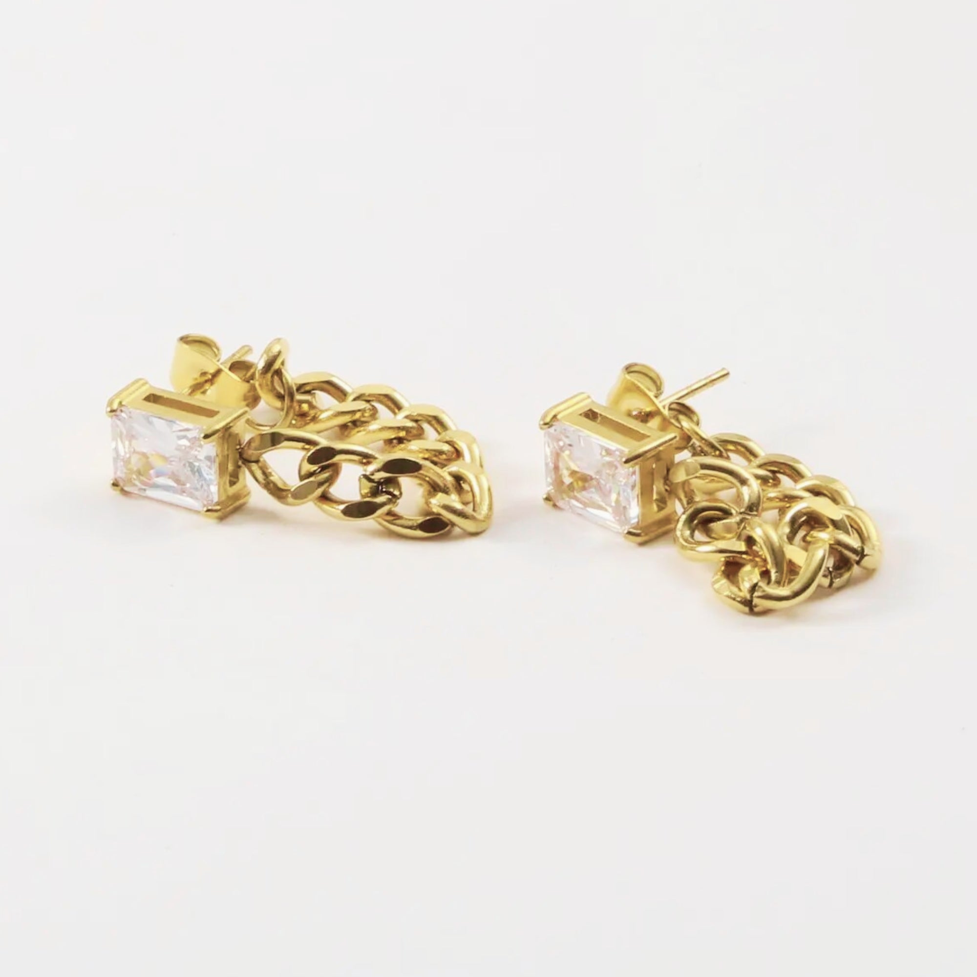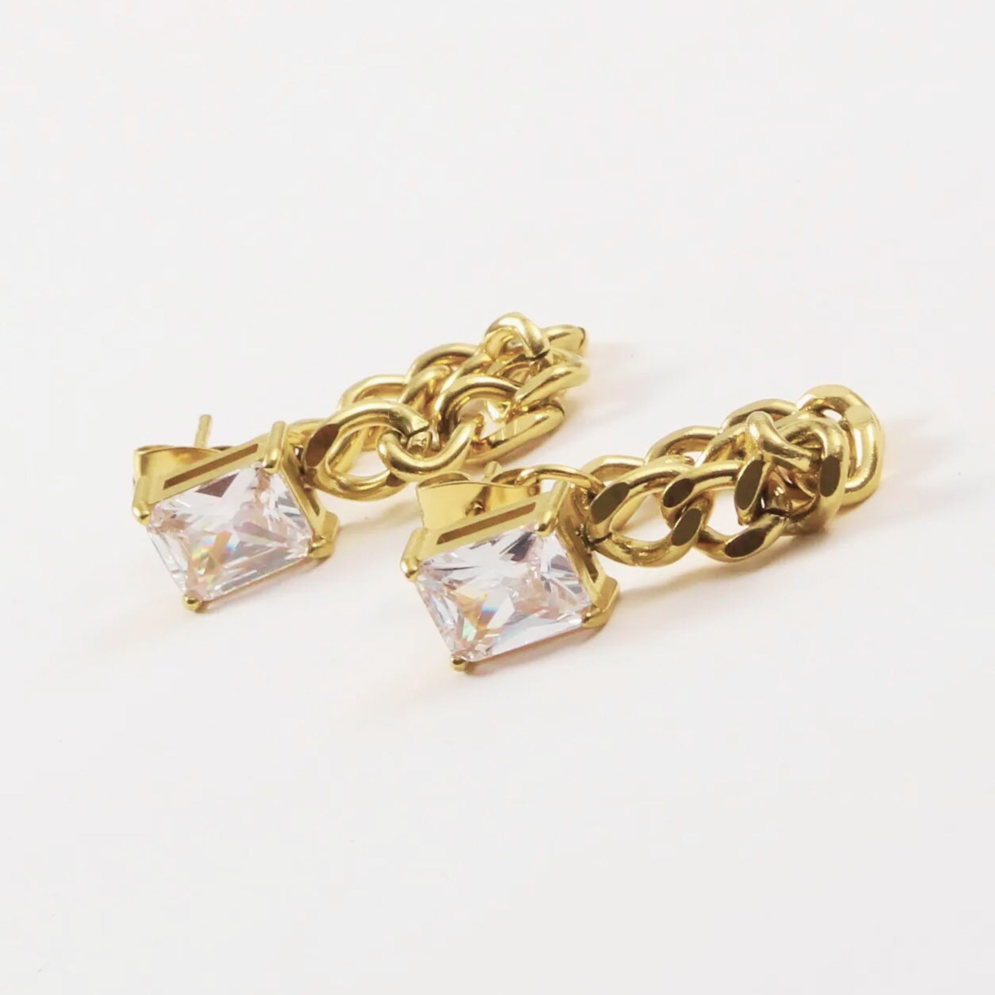 Illuminate your look with these dazzling earrings, featuring delicate chains and sparkling crystals. A perfect accessory to shine in the city or on a night out.