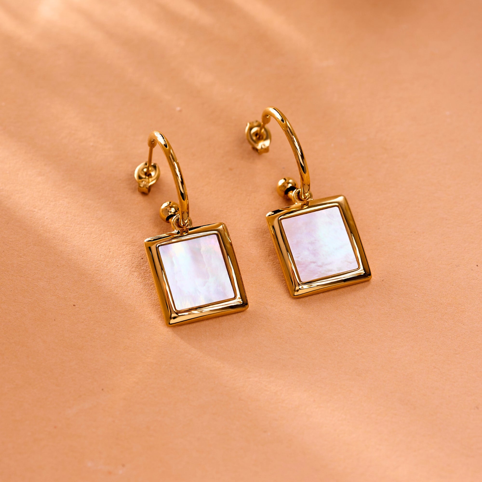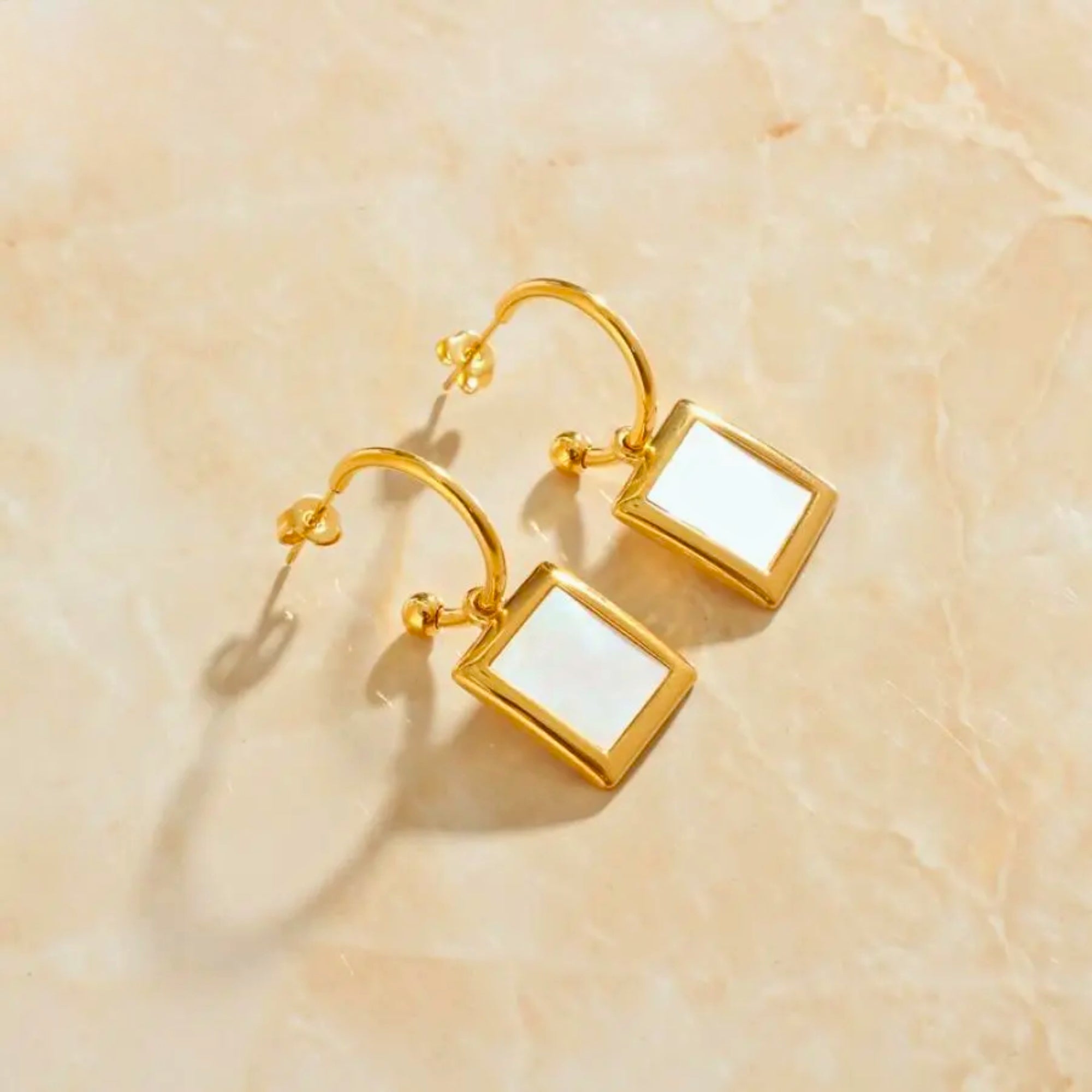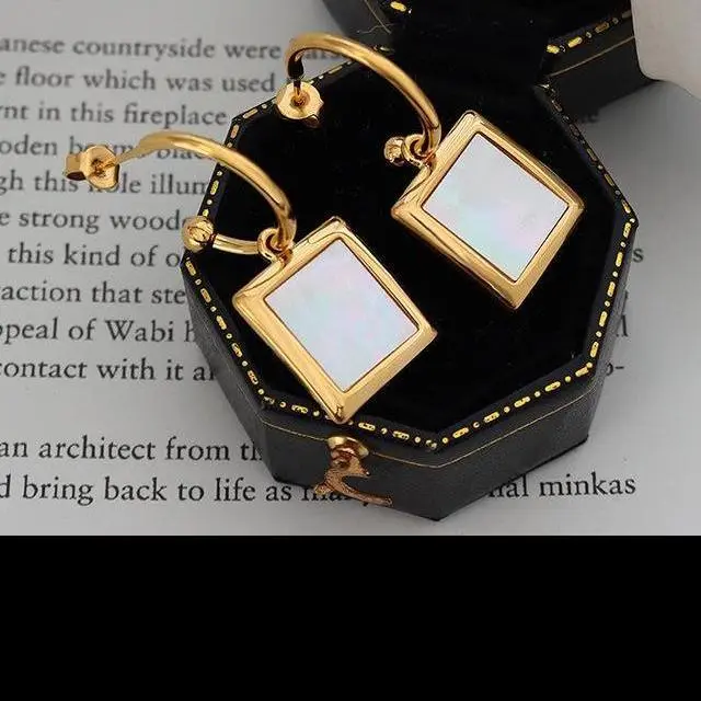 White Shell Square Earrings